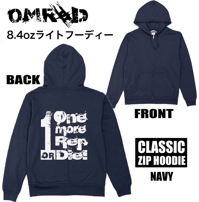 OMRoDロゴを前面に、背面に1more Rep or Die【死ぬ気でかませ】の文言の入ったプルオーバータイプのパーカー。 裏起毛でなくライトめの生地でトレーニングに最適。 その他どのシーンでも着やすい使い勝手のいい一枚。ユニセックスですのでメンズサイズ基準でお選びください。 綿100% ヘザーグレー ※Standard PulloverとFront Ward Pulloverは同一規格のパーカーになります。