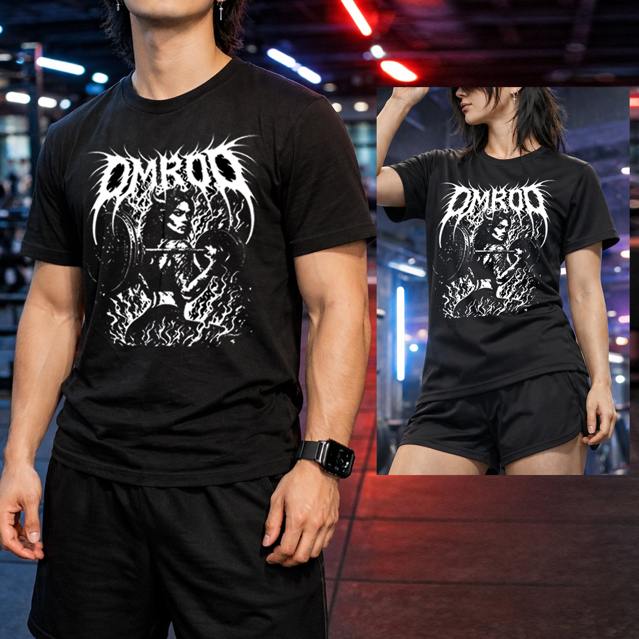 ヘヴィメタル調ハードコアイラストの入ったドライTシャツ。