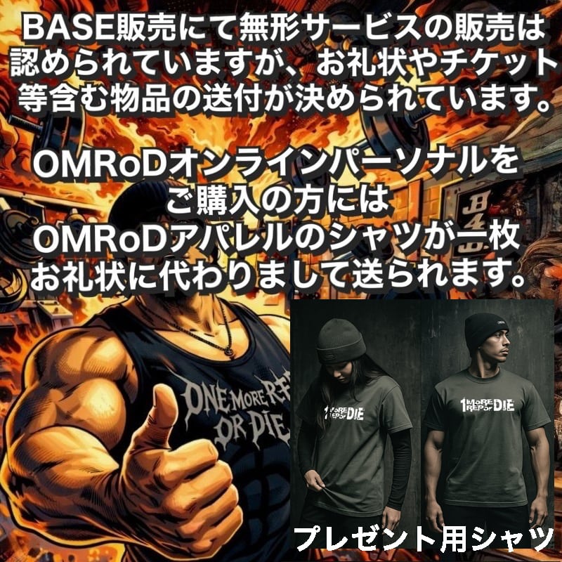 買い切り型でビデオ通話指導などもありませんので、気軽に筋トレにプロの提案とコツを取り入れられます。OMRoDアパレルTシャツ一枚プレゼント付。