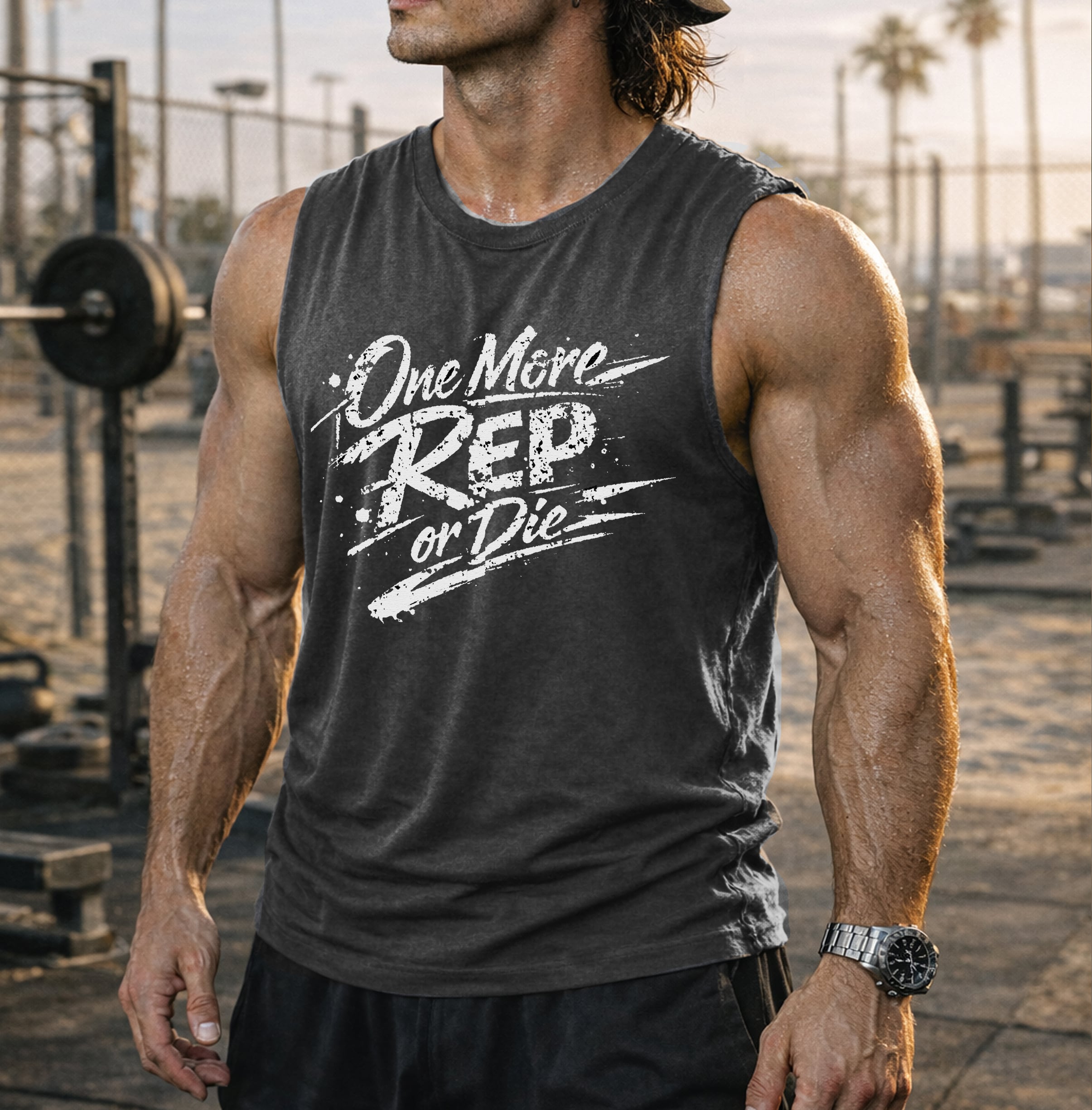 ポリエステル100%生地に海岸風デザインで着やすい一枚。