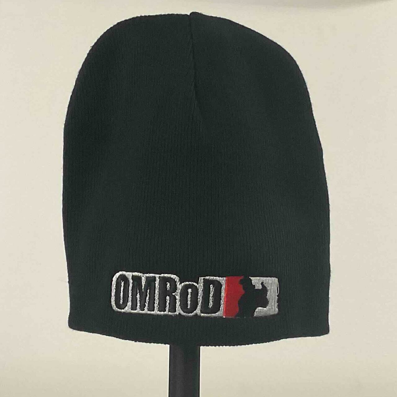 OMRoDロゴ刺繍の入った返し無しのコットンニット帽。